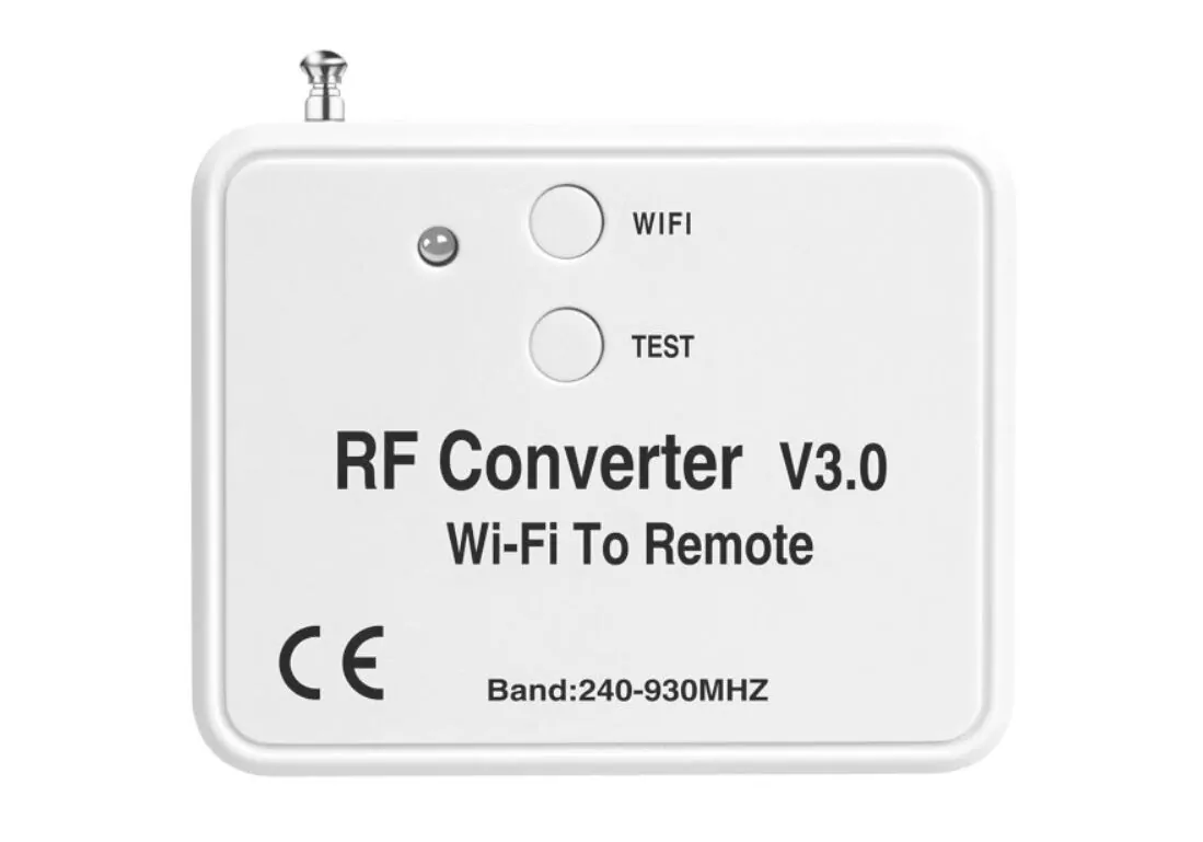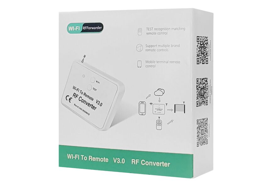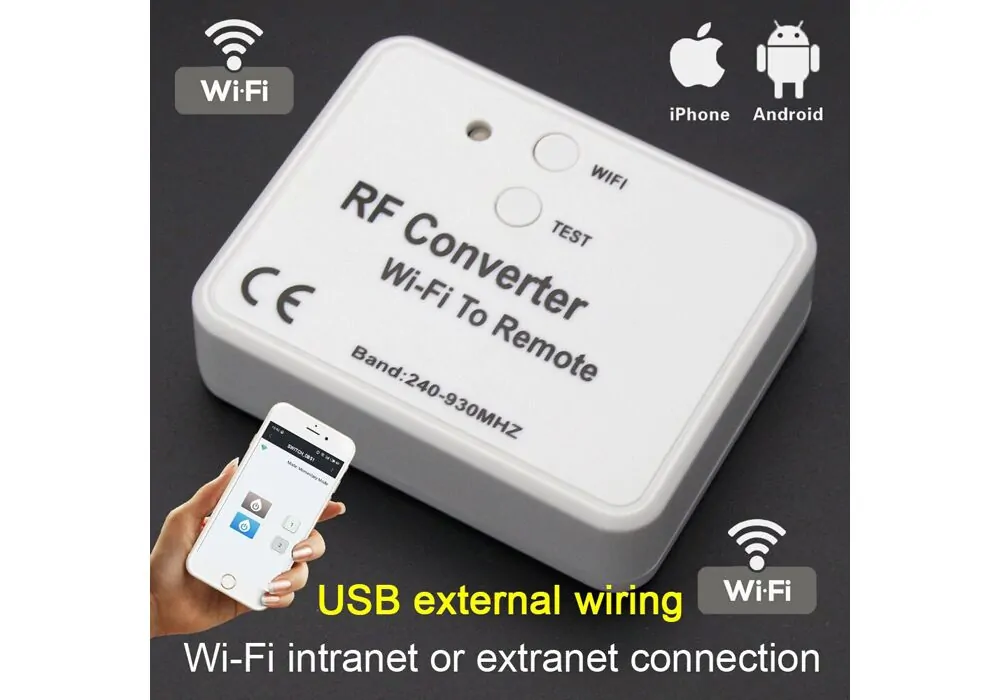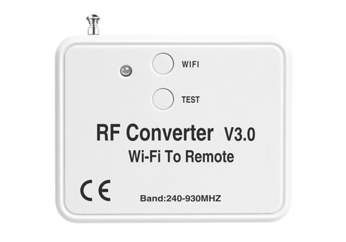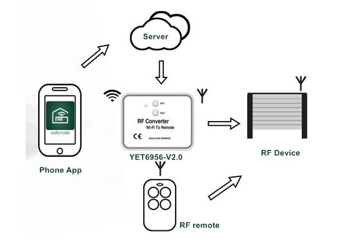 Με τον μετατροπέας wifi σε RF, χωρίς αλλαγή του receiver/controller RF, μπορείτε εύκολα να ρυθμίσετε τη συσκευή RF να ελέγχεται μεσω εφαρμογής WIFI για κινητά (παραδείγματα συσκευών RF: χειριστήρια πόρτας γκαράζ, χειριστήρια πύλης, προϊόντα ασφαλείας, rf έλεγχος φωτός κ.λπ.).